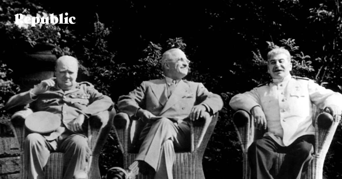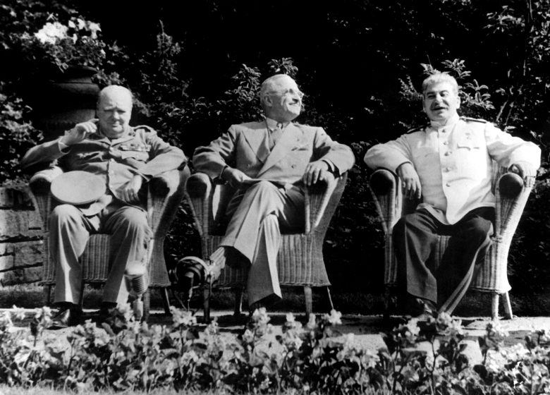 Потсдамская конференция, 17 июля 1945 года. Слева направо: Уинстон Черчилль, Гарри Трумэн, Иосиф Сталин