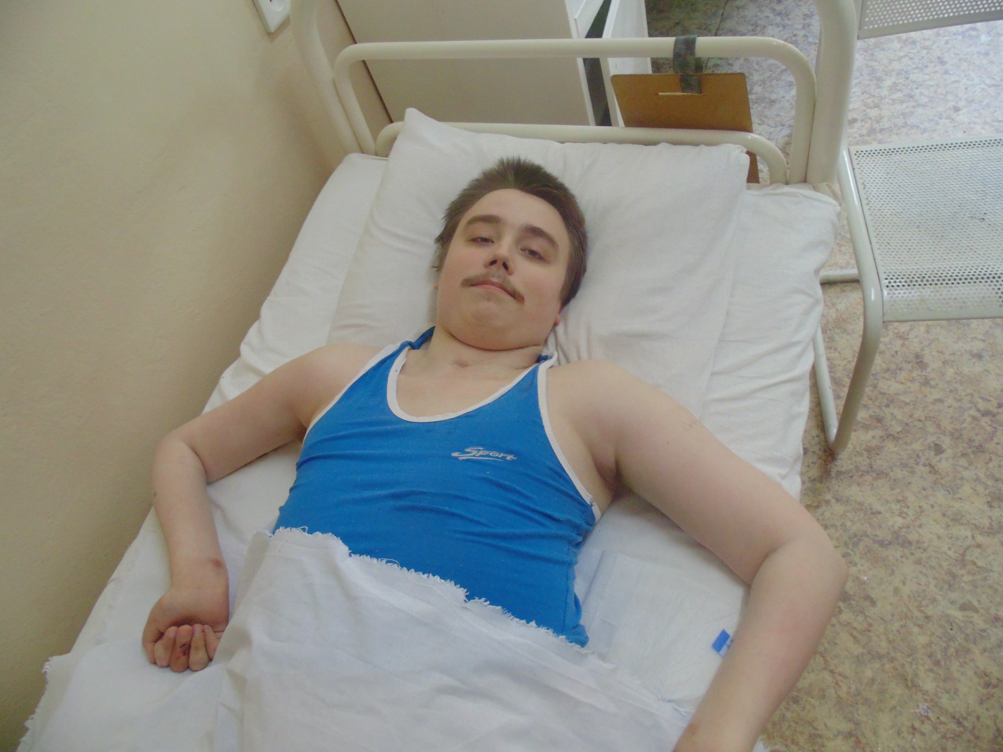 АндрейФото: из личного архива У Андрея случился перелом четвертого и шестого шейного позвонка. Поначалу все было более-менее хорошо: ноги были обездвижены, но лежали прямо, на них можно было опираться. Проблемы начались, когда Андрея перевели из «взрослой» областной больницы в детскую, в отделение неврологии. Чтобы предотвратить деформацию ног, врачи просили упираться ими в стену под углом, лежа в специальной деревянной кабинке. Из-за этого в нижней части спины у Андрея появились пролежни, которые вскоре начали кровоточить. Их не обрабатывали правильно, и они загноились.