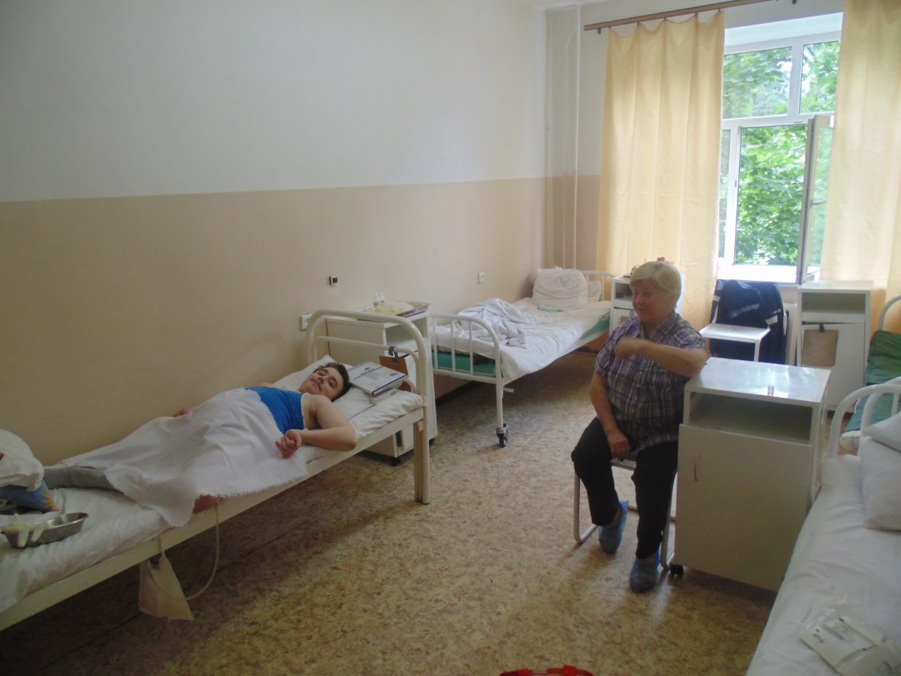 Чтобы попасть в стационарное отделение Центральной городской больницы Боровичей, нужно пройти через затхлый подвал с подсобными помещениями. Старый корпус, вывеска на котором не менялась с 90-х годов. «Люди едут в Новгород, едут даже в Питер, лечатся за деньги — лишь бы не ложиться в эту больницу», — говорит по пути в палату Наталья Николаевна, бабушка Андрея.