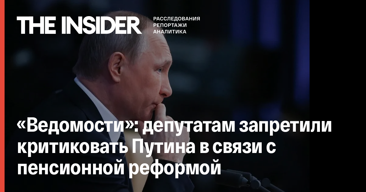 «Ведомости»: депутатам запретили критиковать Путина в связи с пенсионной реформой