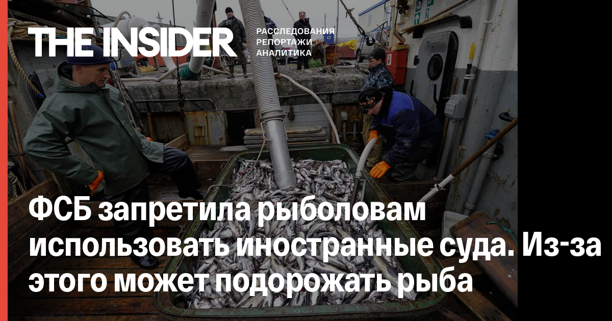 Пограничная служба ФСБ запретила рыбодобывающим компаниям использовать для перевозки продукции суда, принадлежащие иностранцам. Об этом сообщает «Коммерсантъ» со ссылкой на Всероссийскую ассоциацию рыбопромышленников (ВАРПЭ).