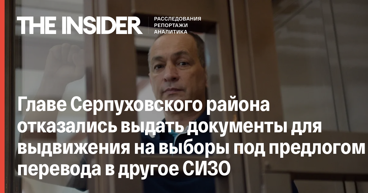 Главе Серпуховского района отказались выдать документы для выдвижения на выборы под предлогом перевода в другое СИЗО