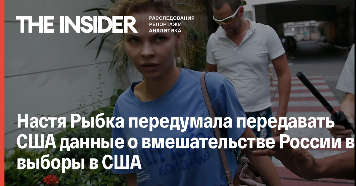 Анастасия Вашукевич, более известная как Настя Рыбка, заявила о том, что больше не собирается передавать США якобы имеющуюся у нее информацию о вмешательстве России в американские президентские выборы 2016 года. Об этом рассказала Vice News представитель Рыбки, жена Алекса Лесли Кристина Шереметьева.