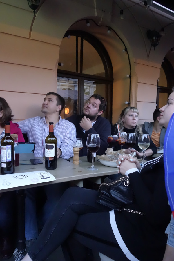Болельщики в кафе у Гостиного двора (СПб) во время матча Россия-Хорватия. Фото В. Ильина.