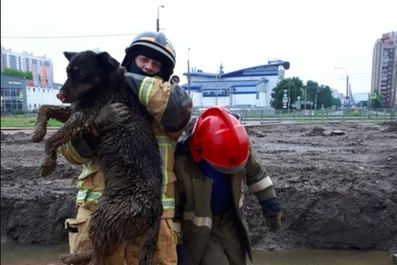 В Невском районе пожарные спасли собаку, которая по шею увязла в грязи