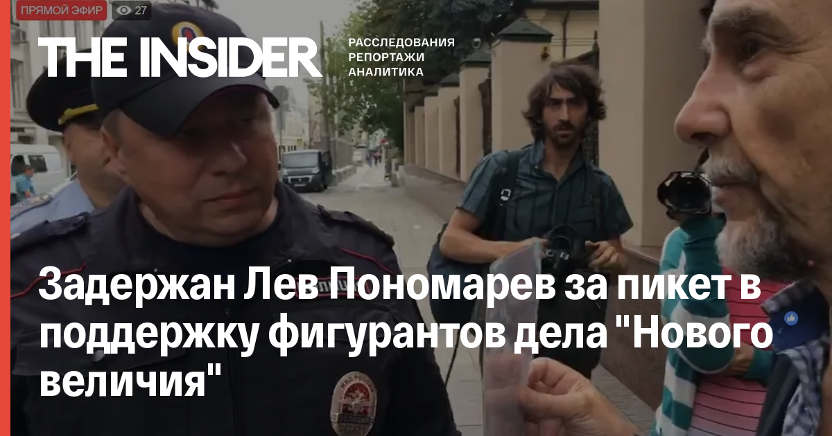 Лев Пономарев прямо сейчас пикетирует Генеральную прокуратуру в защиту фигурантов «Нового величия». Уже подходили полицейские, предупредили, что до 25 июля любые акции без согласования запрещены pic.twitter.com/fNUG1ScPJA