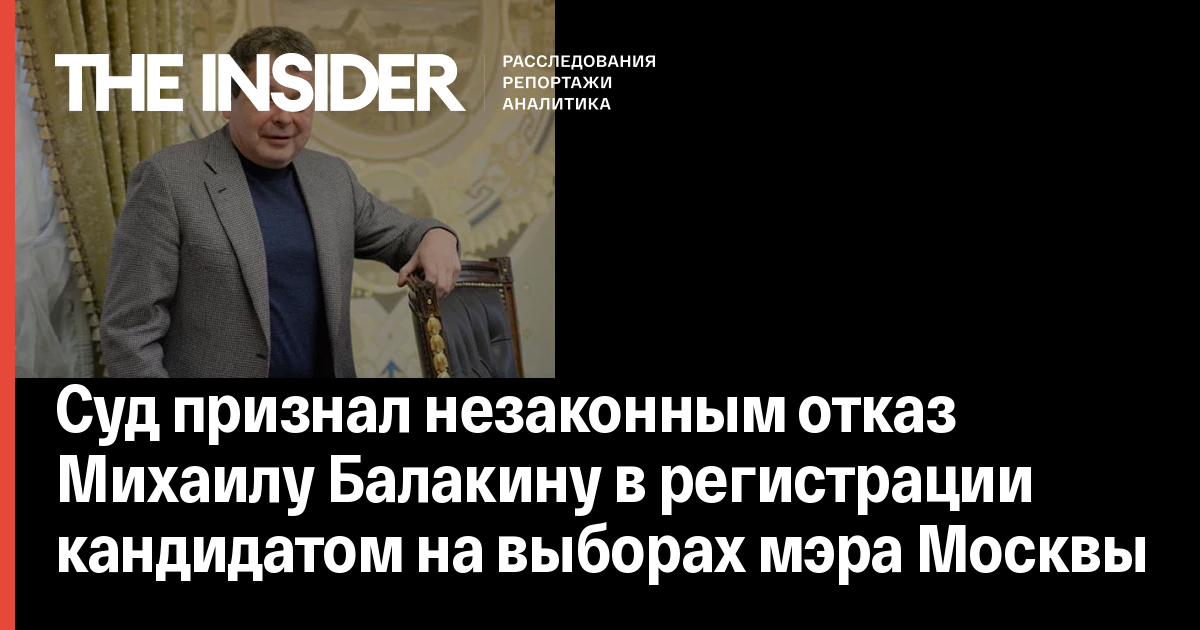 Мосгорсуд признал незаконным отказ Мосгоризбиркома члену партии «Союз горожан» Михаилу Балакину в регистрации кандидатом на выборах мэра Москвы. Прокуратура потребовала обязать Мосгоризбирком зарегистрировать его кандидатом в течение пяти дней.