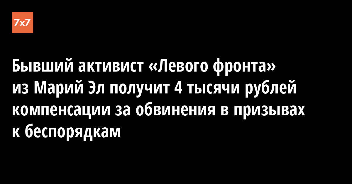 Бывший активист «Левого фронта» из Марий Эл получит 4 тысячи рублей компенсации за обвинения в призывах к беспорядкам
