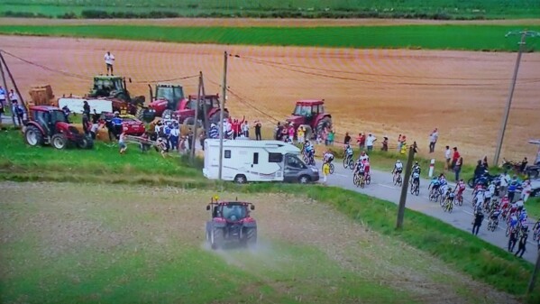 Во Франции организаторам велогонки «Тур де Франс» пришлось приостановить 16-ый этап соревнования из-за забастовки местных фермеров. Протестующие перегородили тракторами и тюками сена дорогу, по которой проходит гонка. Для продолжения этапа «Тур де Франс» пришлось вмешаться полиции.