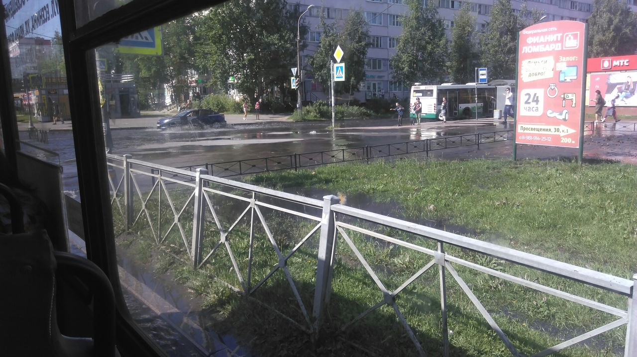 Сообщения поступили примерно в одно и то же время. Водой залило перекресток улицы Симонова и проспекта Просвещения.