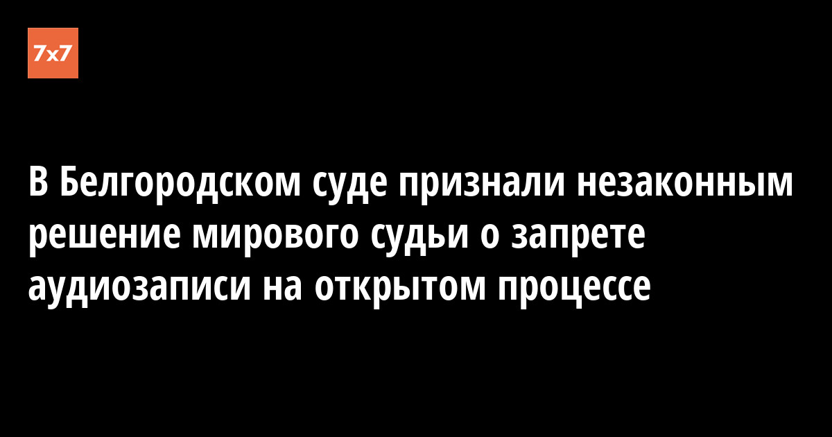 Мировой судья Восточного округа Белгорода 24 июля во время процесса над активистами движения «Открытая Россия» запретил корреспонденту «7x7» производить аудиозапись заседания. 25 июля в беседе с журналистом интернет-журнала сотрудник пресс-службы Белгородского областного суда признал, что решение было незаконным.