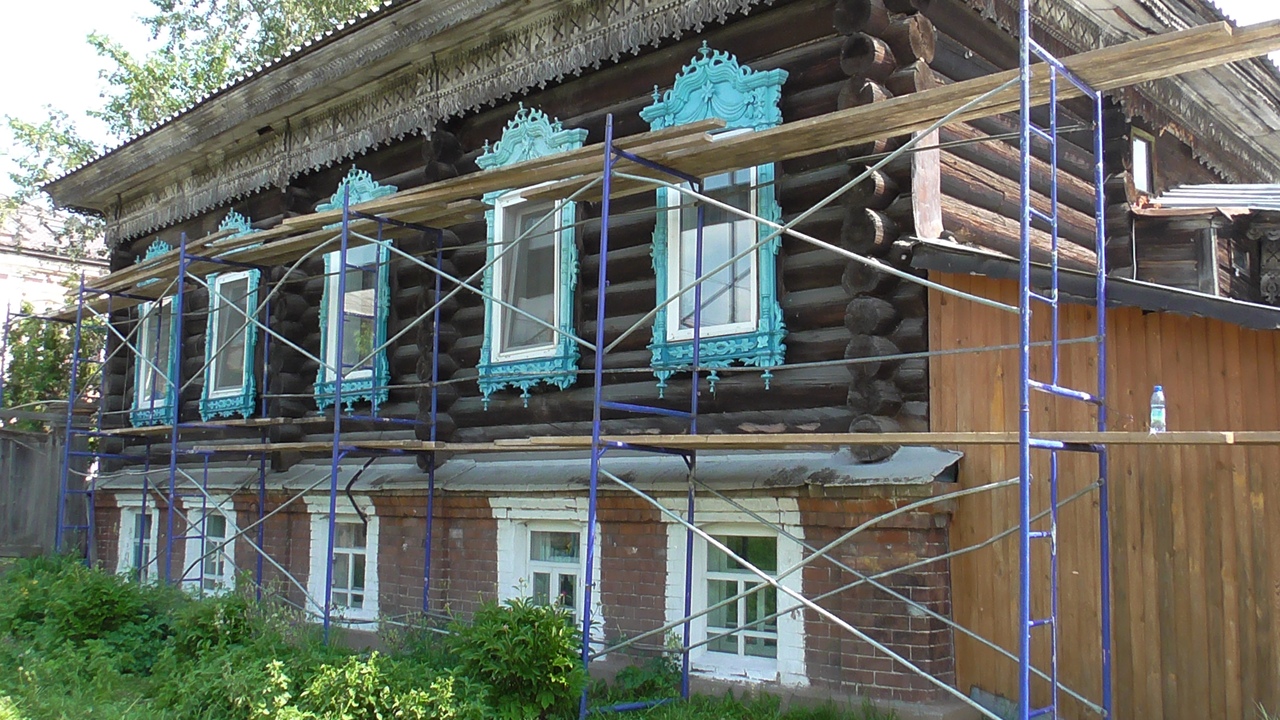 Error rendering VK.В прошлом году волонтеры, с одобрения экспертов, занимались реставрацией фасада здания по улице Дзержинского, построенного 120 лет назад. Сейчас реставрируют наличники у старинной усадьбы по улице Войкова.