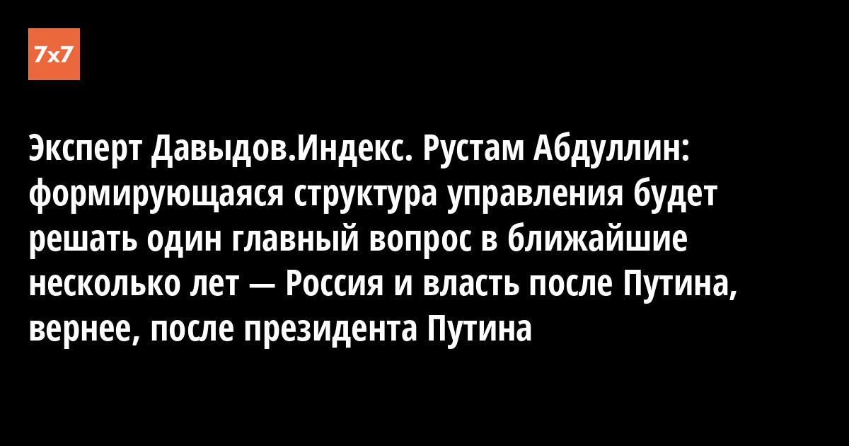 Эксперт Давыдов.Индекс. Рустам Абдуллин: формирующаяся структура управления будет решать один главный вопрос в ближайшие несколько лет — Россия и власть после Путина, вернее, после президента Путина