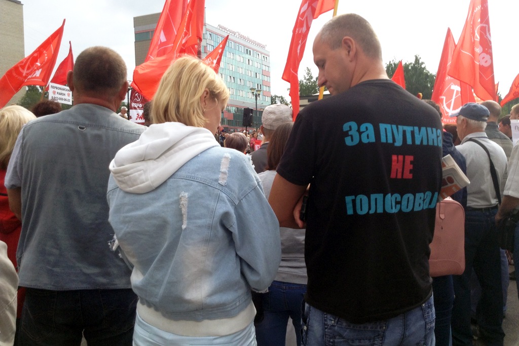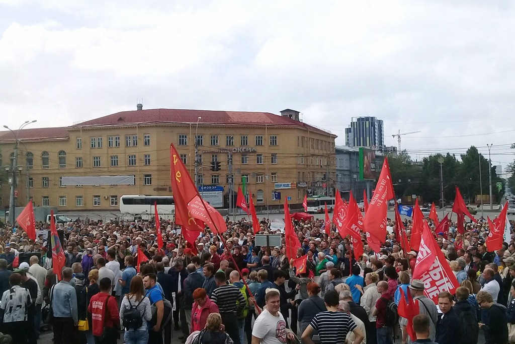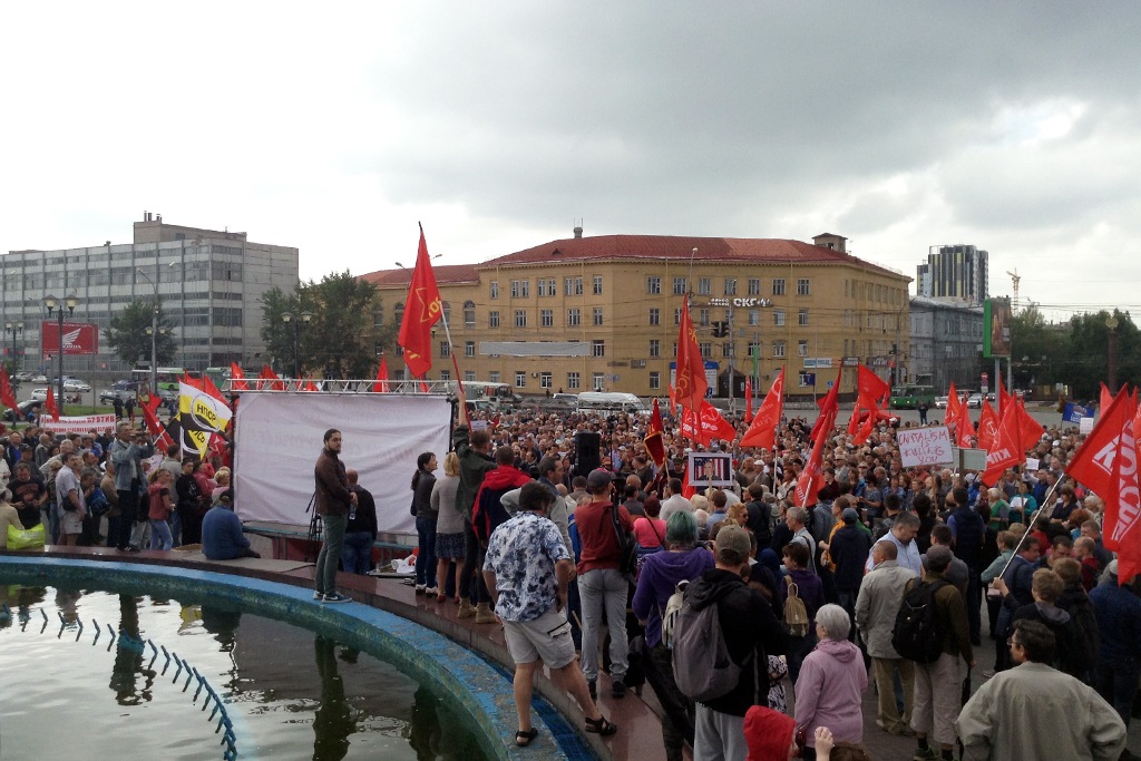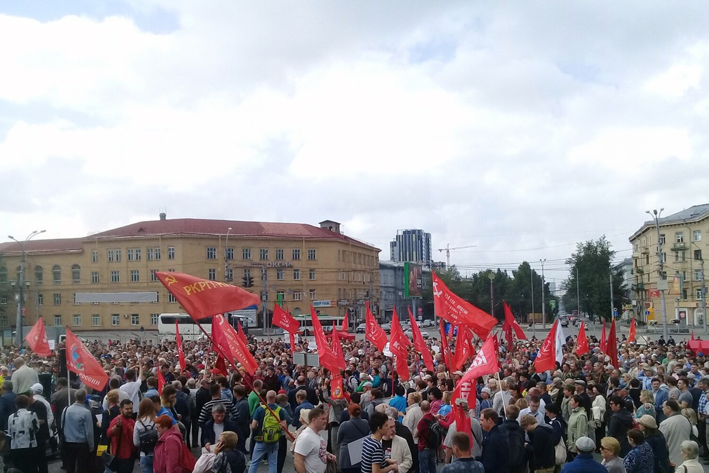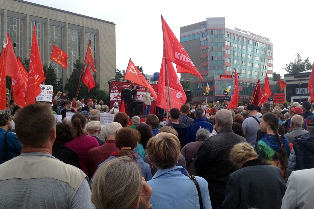Митинг прошел на площади Пименова 28 июля. Акцию организовала КПРФ, сцена была в ее символике, но на мероприятия собрались представители разных политических сил и движений: от «Яблока» до «Левого фронта».