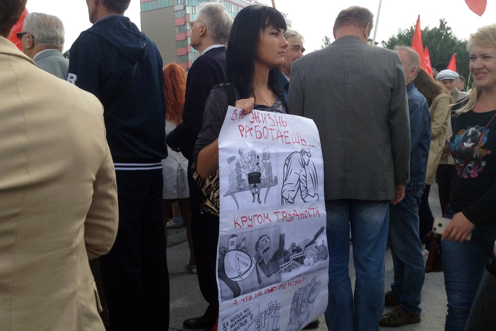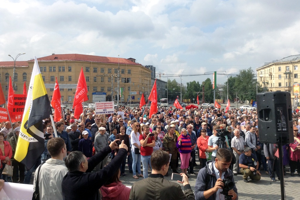 В Новосибирске прошел десятый митинг против повышения пенсионного возраста и НДС. Число протестующих выросло в два раза по сравнению с предыдущими акциями.