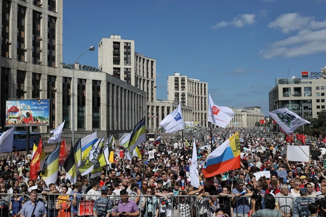 На проспекте Сахарова в Москве начался согласованный митинг против повышения пенсионного возраста. Акцию организовала Либертарианская партия.