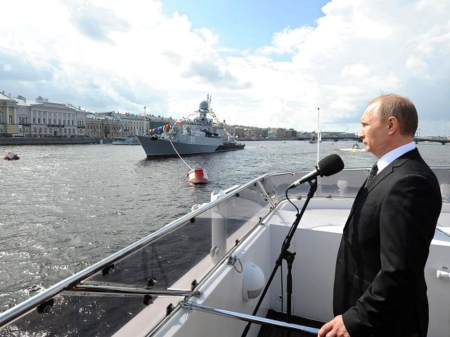 Путин как верховный главнокомандующий поприветствовал экипаж атомного подводного ракетоносца «Орел» проекта 949А «Антей», который пришел с Северного флота и стоит на Кронштадтском рейде, а также поздравил с праздником моряков ракетного крейсера «Маршал Устинов».