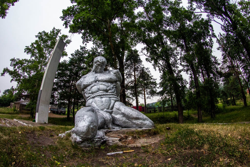 В 50 км к северо-западу от Красноярска остановка в поселке Памяти 13 борцов. Ему без малого двести лет: в 1823-м участник Отечественной войны 1812 года, коллежский советник Иван Коновалов начал здесь строительство Знаменского стекольного завода, где производили «разную посуду, которая до того крепче, что без всякого опасения выдерживает кипяток». Изделиями из стекла и фаянса знаменцы снабжали не только Енисейскую, но и Томскую, и Иркутскую губернии. Поселок и назывался Знаменским, пока в 1919 году, в Гражданскую, колчаковцы не расстреляли здесь тринадцать сторонников советской власти. В 1920 поселок получил свое нынешнее название. Памятник «зверски казненным» — одна из достопримечательностей, которую показал во время небольшой экскурсии электромонтер Василий Бондаренко.