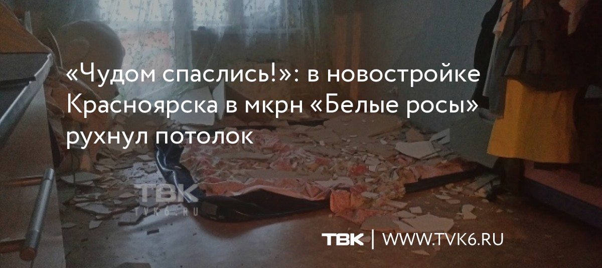 «Чудом спаслись!»: в новостройке Красноярска в мкрн «Белые росы» рухнул потолок