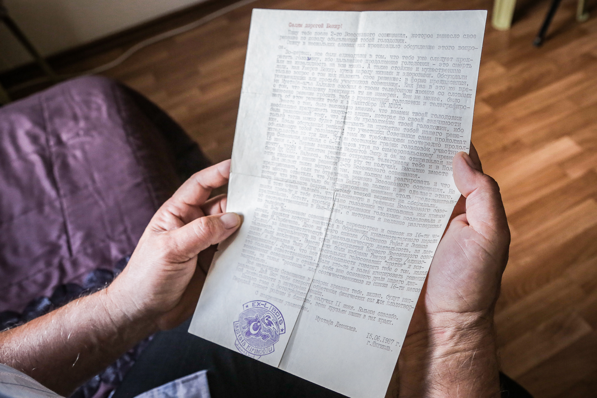 В какой-то момент он подошел ко мне, отвел в сторону и протянул конверт. Это было письмо от Мустафы Джемилева. Я развернул машинопечатную страничку и начал читать. Письмо воздействовало на меня просто гипнотически. Едва дочитав его, я перебил разговоры активистов и заявил, что прекращаю голодовку. Это был тридцатый день. До письма у меня и мысли не было о добровольном прекращении голодовки.