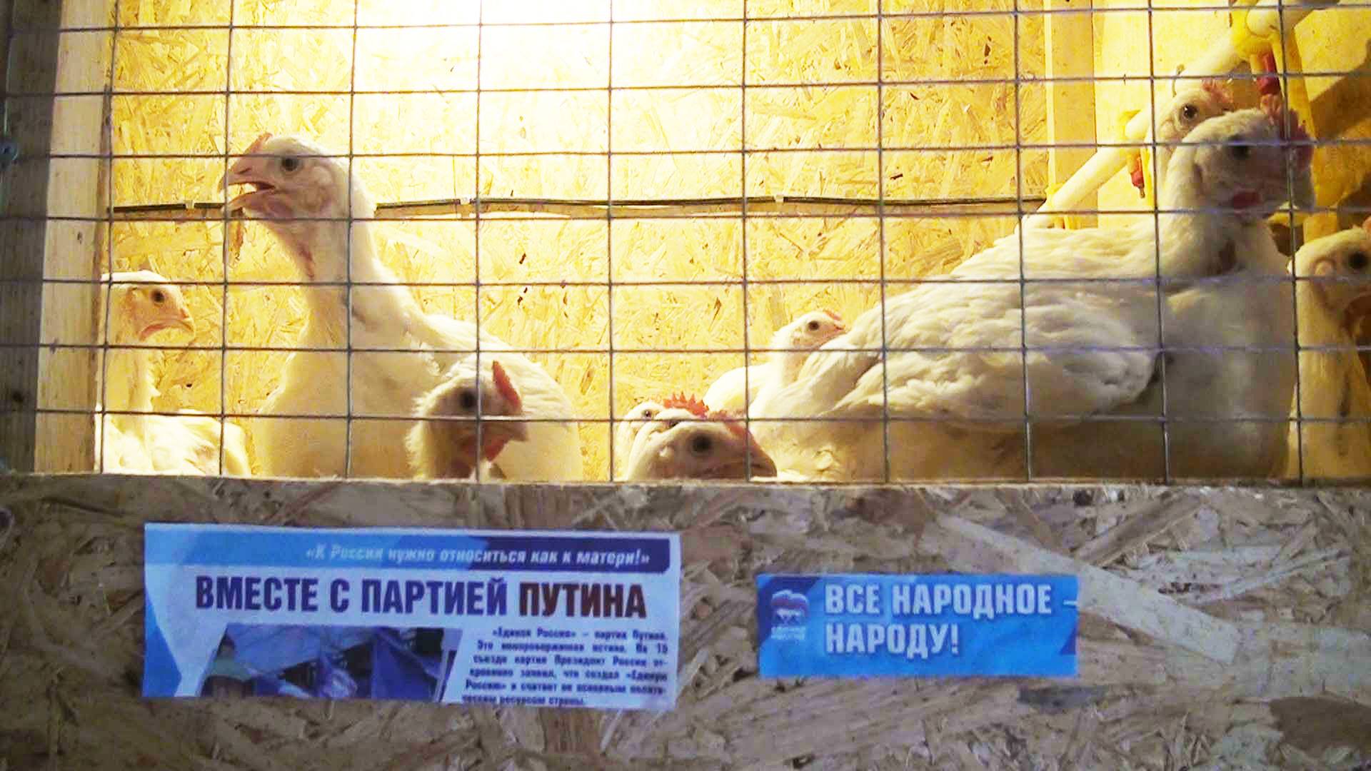 – Кушают много, гадят, от них запах неприятный, мухи. Но они очень вкусные, когда уже готовые. Я специально налепила тут все эти лозунги. Как "Единая Россия" шла на выборы, что они нам обещали, а в итоге мы получили то, что получили: поднятие пенсионного возраста, обложение налогами ЛПХ... – объясняет Наташа, почему бройлеры у нее ассоциируются с единороссами.