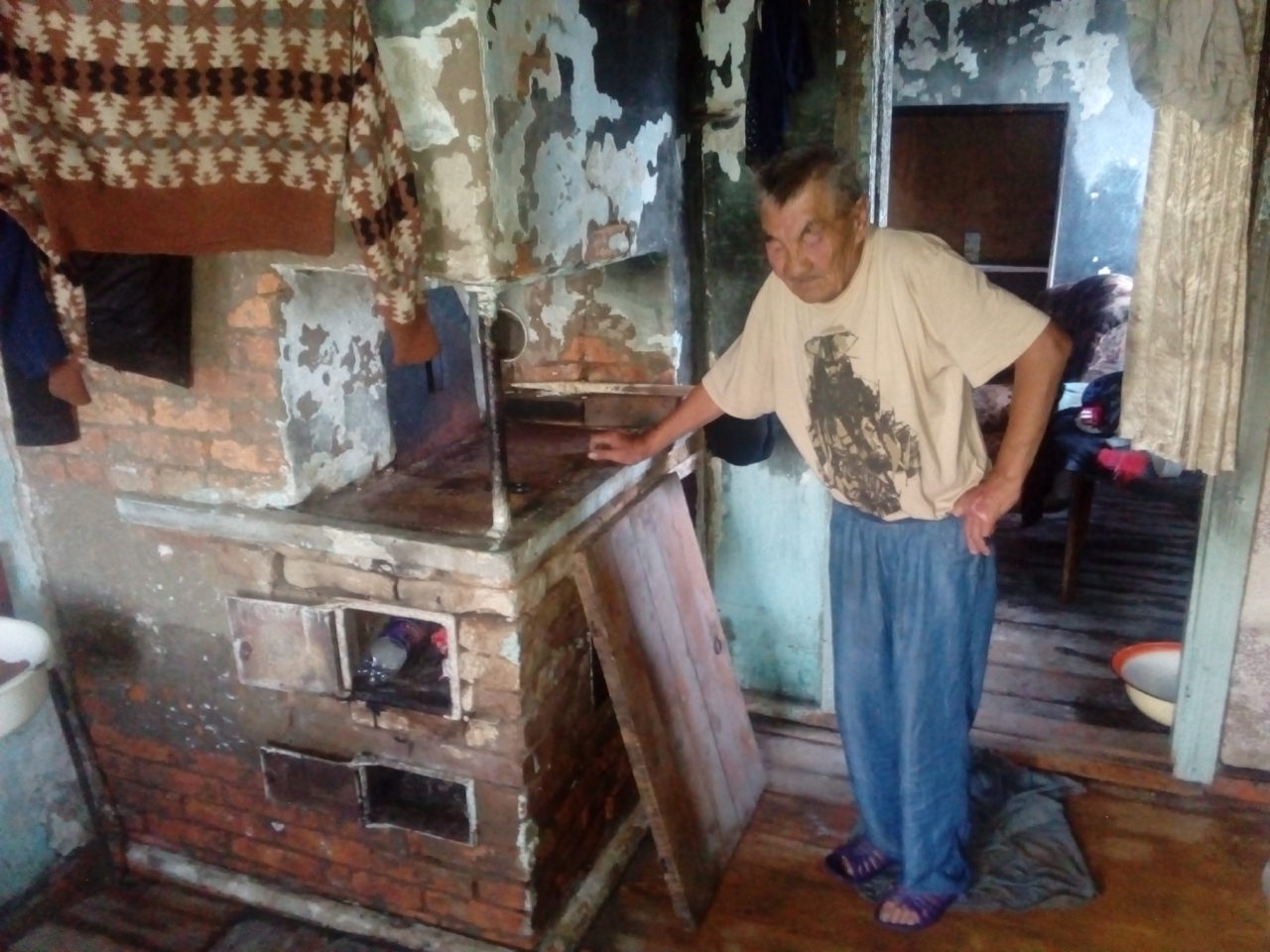 Ссутулившийся старик стоит посреди двора в высоких резиновых сапогах и в тысячный раз осматривается по сторонам. Можно ли что спасти? Нет, поздно, сгниет все. Хлеб и воду он принимает, кажется, без особой благодарности. Привезли — спасибо, а не привезли бы — так и не надо. Огород пропал, старенькая мебель выброшена, пол, понятное дело, сгниет, надо перестилать. А на какие шиши, когда пенсия чуть больше восьми тысяч?