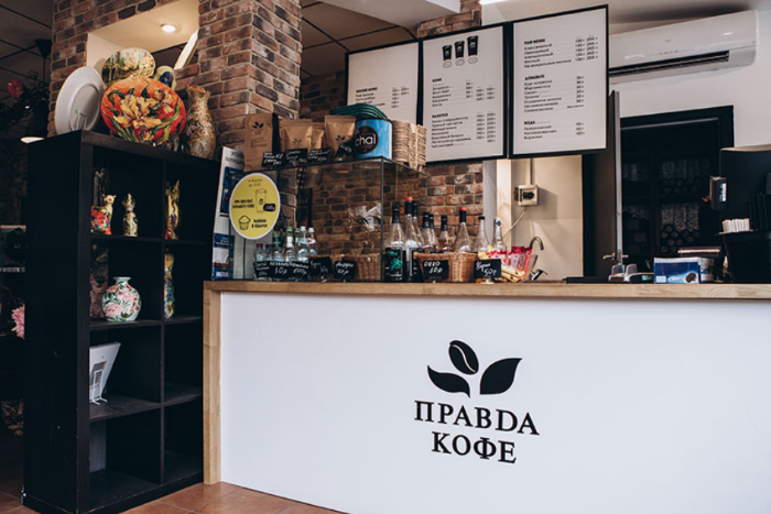«Правда кофе» работает в формате кофе с собой. В заведении делают акцент на качественном кофе и низких ценах. Например, маленький капучино стоит 50 рублей.