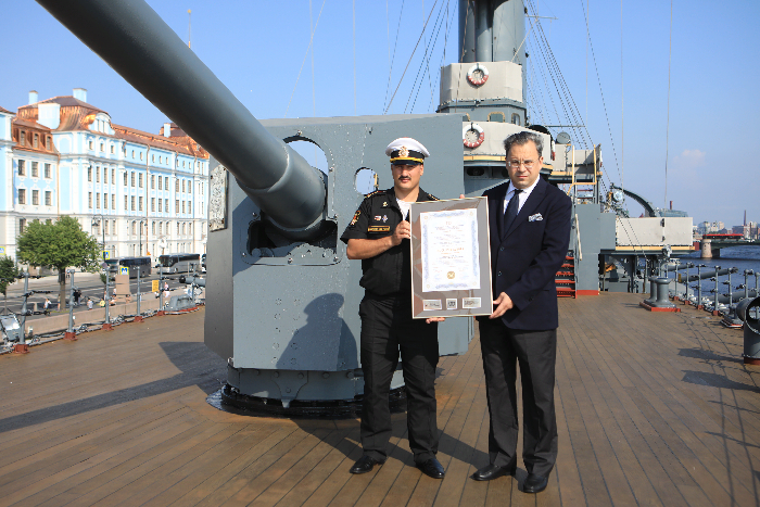 Решение о включении судна в этот список принял Международный комитет по вопросам туристической привлекательности и устойчивому развитию. Сертификат вручили накануне Дня ВМФ.