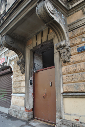 В доме в центре Петербурга коммунальщики самовольно заменили исторические двери на металлические. Здание охраняется КГИОПом