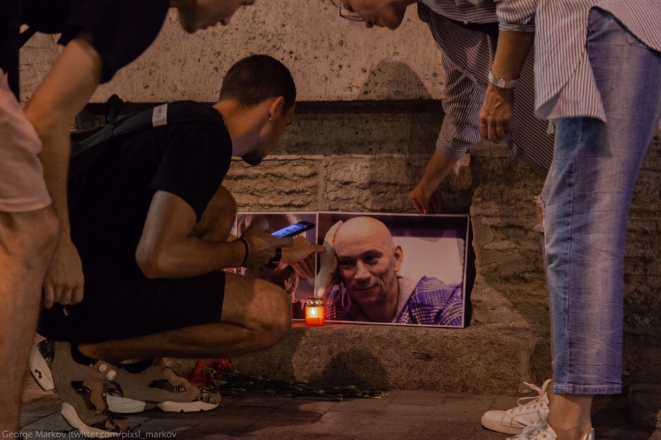 У Дома журналиста на Невском проспекте, 70 появился стихийный мемориал убитым 30 июля в ЦАР россиянам Орхану Джемалю, Александру Расторгуеву и Кириллу Радченко, которые снимали там документальный фильм о ЧВК «Вагнер». Активисты движения «Время» сообщили об этом в своей группе «ВКонтакте» и призвали приносить туда цветы.