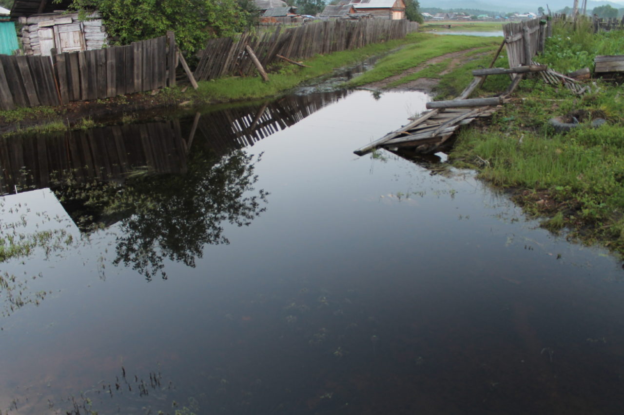 Село ТунгокоченФото: Андрей Беспалов «Мы подходили к строителям, говорили им: “Вы неправильно дамбу делаете! Зачем водоотводную трубу так вкапываете? Если река поднимется, через эту трубу вода хлынет в деревню”. А они нам: “Не мешайте работать, мы все по проекту делаем”. Но ведь так и случилось: река зашла через ту трубу, прорвалась через нижнюю часть дамбы. Ну и с сопок дождевая вода пошла на село, у нас канавы водоотводные перестали рыть. Раньше канавы отводили дождевую воду к озерам, в обход деревни. В селе сейчас нет ни трактора, ни плуга, чтобы заново прокопать канавы», — говорит Владимир.