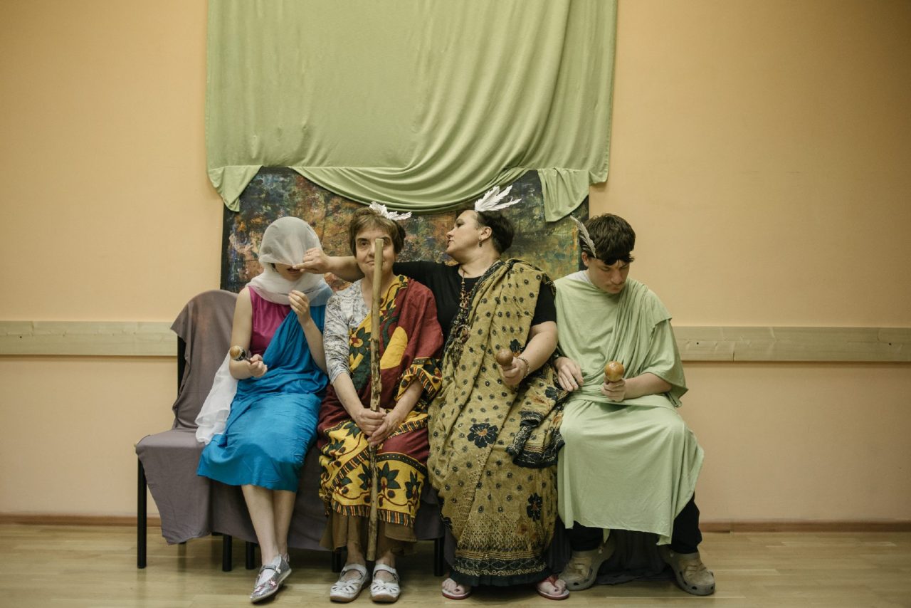 Сотрудники и подопечные центра играют в спектакле, который они подготовили специально к празднованию дня рождения «Турмалина»Фото: Наталия Платонова для ТД «Турмалин» похож скорее на семейный творческий центр, чем на реабилитационный. Кроме работы, подопечные вместе ездят на экскурсии, празднуют дни рождения, ставят спектакли. Сотрудники с уважением относятся к их желаниям и настроениям. В центре существуют свои ритуалы, песни и танцы. Такая атмосфера — результат сложнейшей ежедневной работы опытных дефектологов и психологов. Эти люди 15 лет помогают взрослым людям с особенностями и их семьям. Именно на оплату их работы фонду так нужны средства. Если вы сегодня подпишетесь на небольшое пожертвование, 50 или 100 рублей в месяц, люди с ментальными нарушениями не будут чувствовать себя ненужными и забытыми.