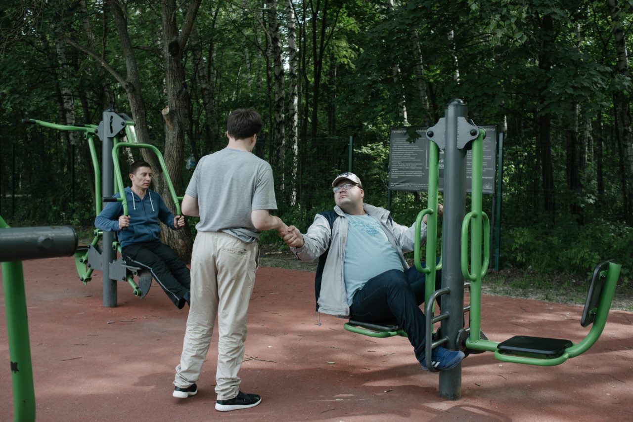 Дима на спортивной площадке во время прогулки в паркеФото: Наталия Платонова для ТД В «Турмалин» Дмитрий ходит как на работу — пять дней в неделю. Дима очень обязательный и ответственный, любит порядок, у него отличная память. Он аккуратно работает в мастерских, по инструкции. В музыкальном классе он поправляет тех, кто что-то делает не так. Правда, если меняется расписание центра, то ему становится тяжело, он расстраивается и может даже заплакать. Когда Дима возвращается из «Турмалина» домой, он всегда уходит в свою комнату отдыхать. Общение, бытовые задачи, работа в мастерских для людей с особенностями — тяжелый труд.