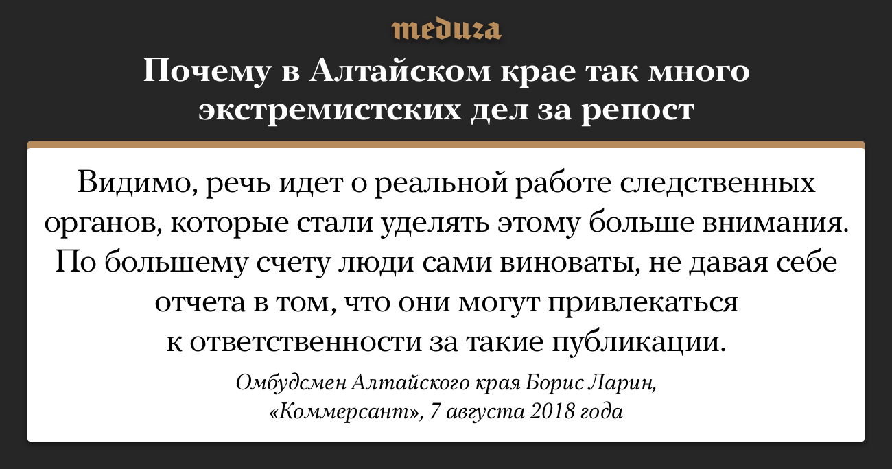 «По большому счету люди сами виноваты». Алтайский омбудсмен объяснил, почему в регионе так много экстремистских дел за репосты