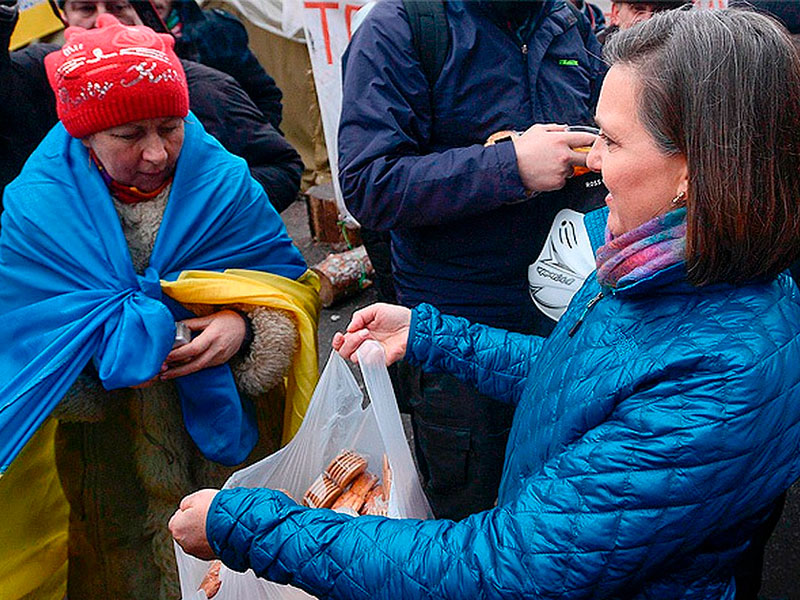 Замгоссекретаря США Виктория Нуланд с печеньем и овощами / flickr.com Но в случае с Украиной подход у Москвы был иным, чем в случае с Грузией. Она оказывала поддержку пророссийским сепаратистским силам на территории Украины, но формально военного вмешательства не было — были только обвинения в этом со стороны Киева и западных стран, в то время как Россия последовательно отрицала свою вовлеченность. При этом если на российско-грузинскую войну ЕС и США отреагировали очень осторожно, то в ответ на украинский эпизод они перешли к жесткой риторике и стали вводить санкции.