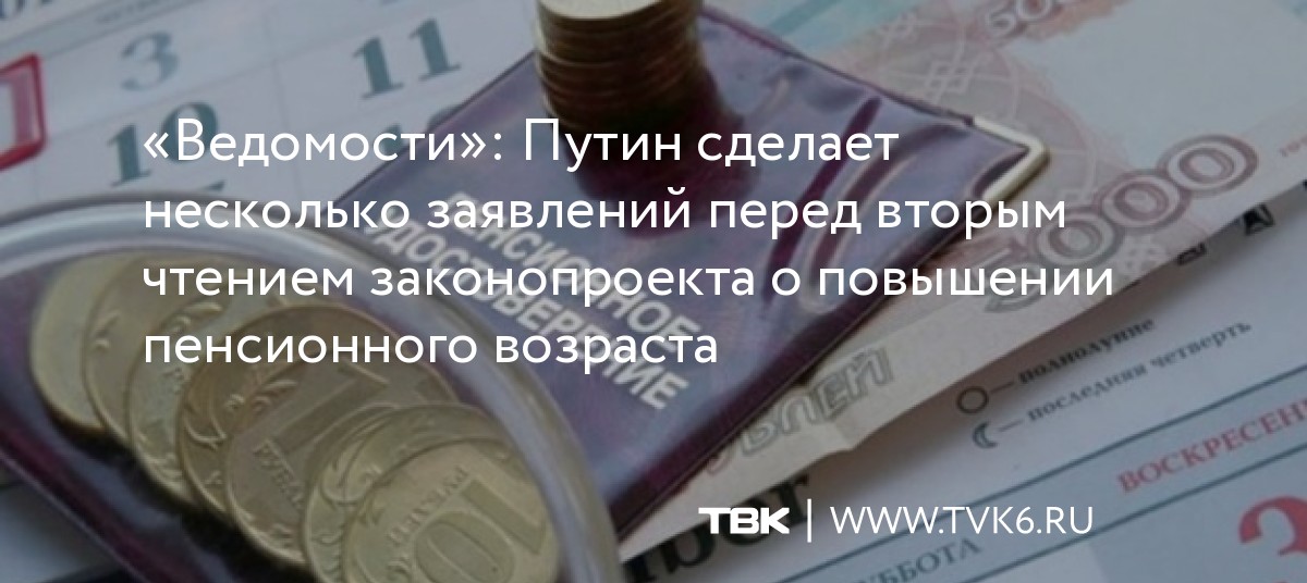 «Ведомости»: Путин сделает несколько заявлений перед вторым чтением законопроекта о повышении пенсионного возраста
