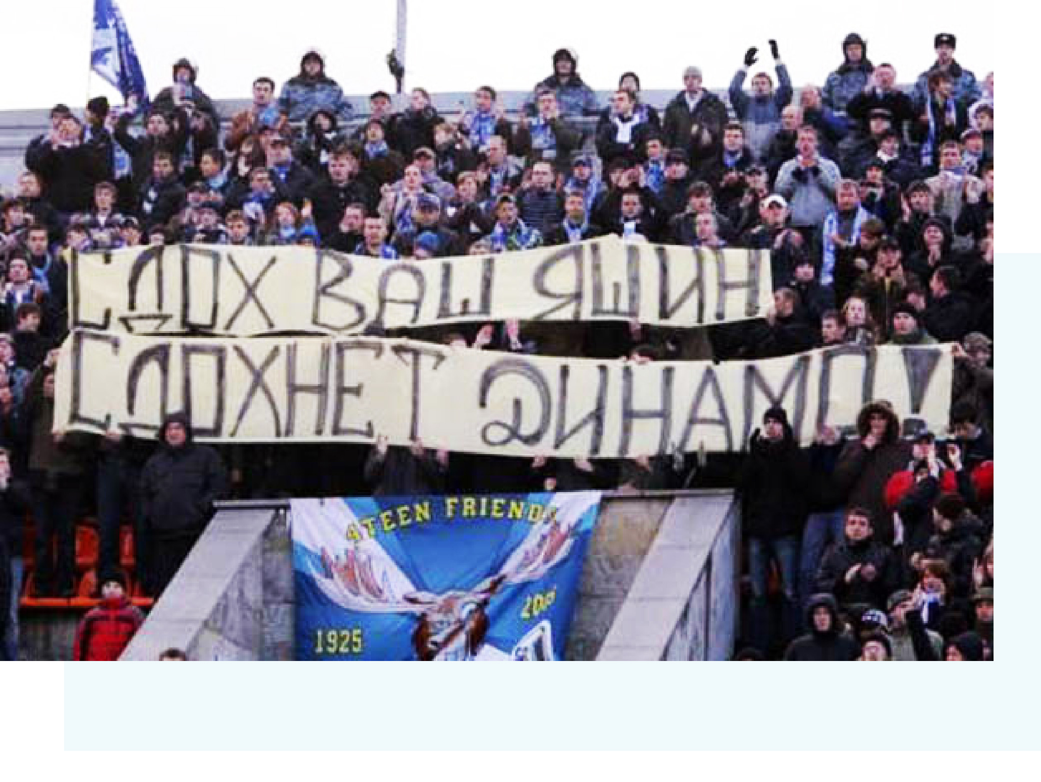 Одним из самых скандальных баннеров на «Петровском» стал вывешенный во время матча «Зенита» с «Динамо» 16 ноября 2008 года. На нем было написано: «Сдох ваш Яшин, сдохнет „Динамо“».