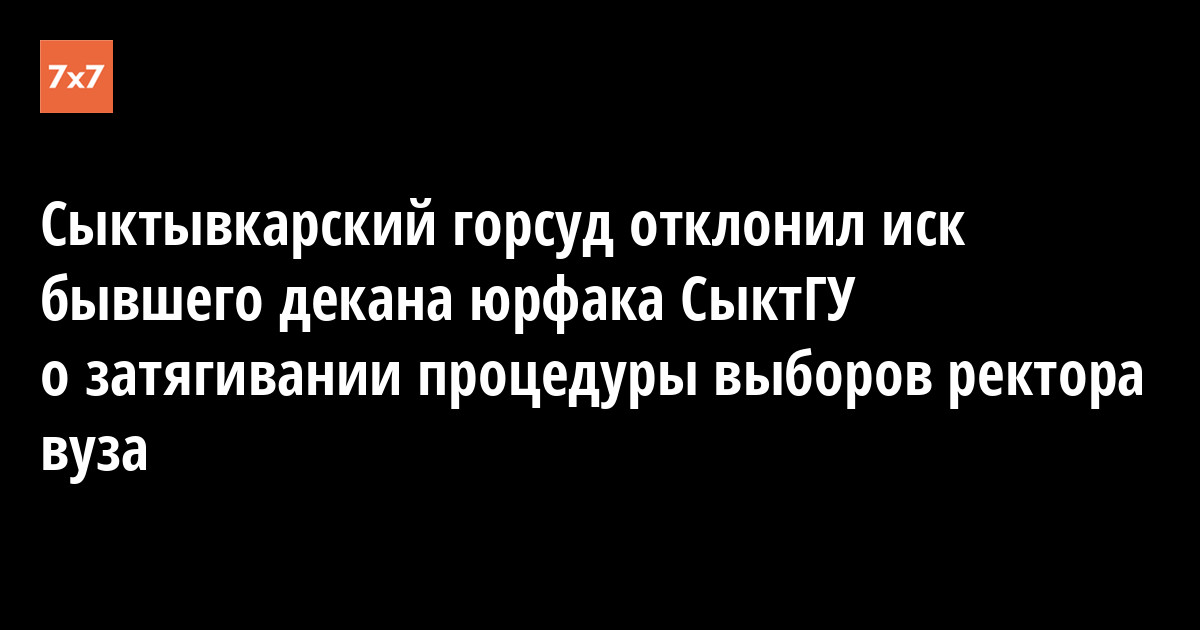 Сыктывкарский городской суд отклонил иск бывшего декана юридического факультета Сыктывкарского государственного университета Риты Тории к вузу, в котором она утверждала, что учебное заведение затягивает процедуру выборов нового ректора. Об этом 13 августа сообщил корреспондент «7x7», который присутствовал на заседании суда.