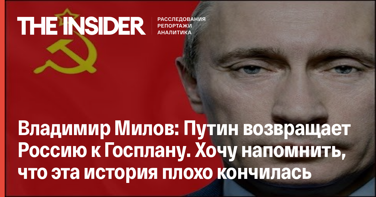 Владимир Милов: Путин возвращает Россию к Госплану. Хочу напомнить, что эта история плохо кончилась