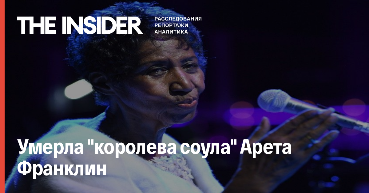 В США в возрасте 76 лет умерла певица Арета Франклин, сообщает Associated Press. Франклин называли «королевой соула», она также исполняла ритм-энд-блюз, джаз и госпел.