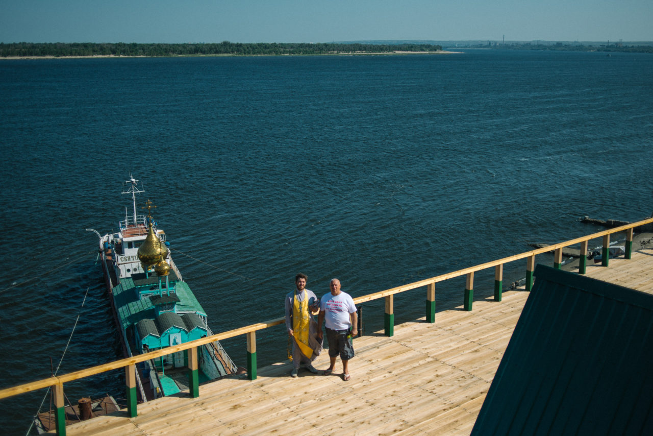Вячеслав Жебелев: В последнем плавании участвовал не я, а отец Никон. Он плавал и в Астрахань, и в Саратов — везде храм встречали с восторгом. Представляете, корабль по Волге плывет, с куполами, с колокольней, еще и с иконами. Чудо какое-то. Конечно, весь народ говорил: «Что это? Не привидение бысть?»