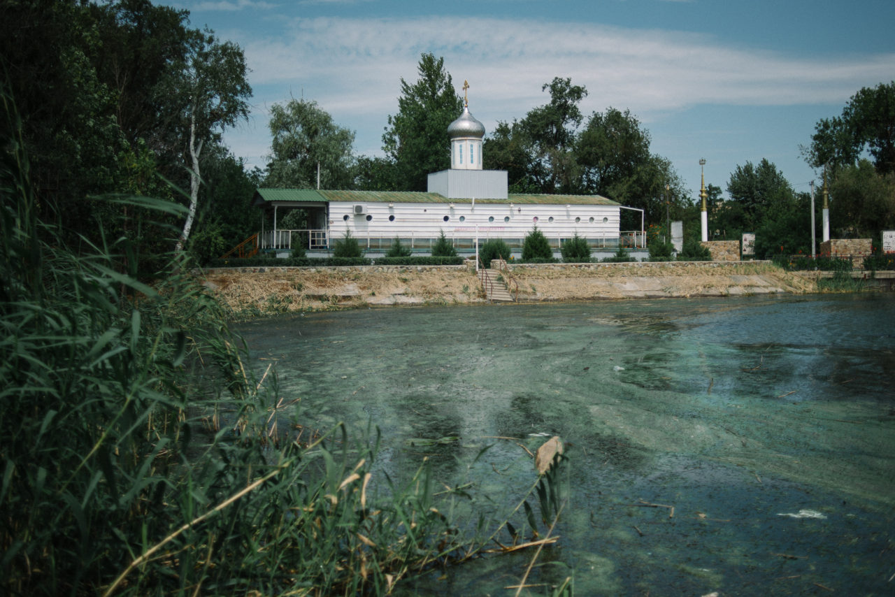 — Он стоит на отшибе, я утром приезжаю и обхожу его с надеждой, что все нормально, что окна закрыты, что никто баллончиком на стенах не писал. Некоторые удивляются, как так можно, но все мы из советского времени, когда храмы вообще взрывали. Нормальные люди не полезут, конечно, но всякие бывают. Детвора здесь и сейчас купается, играет, разбрасывает пенопласт, деревяшки какие-то. Ну, это дети. А расположение у храма действительно удачное, вода прямо под окнами. Как посмотришь — вспомнишь фильм «Любовь и голуби»: «Сразу в море».