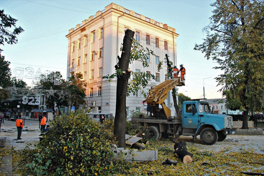 Во время реконструкции повредили корневую систему лип, которые стали быстро засыхать. Деревья более 50 лет росли за памятником Ленину. Их пришлось вырубить — об этом написал анонимный пользователь в группе «Народная Рязань» во «ВКонтакте». «Спустя несколько дней липы спилили, и с улицы Почтовой — „Рязанского Арбата“ — открылся туристически привлекательный вид на спину бронзового Владимира Ильича», — добавили на странице археологической экспедиции. Василий Конов предложил как можно быстрее высадить деревья в этом месте: «Мощные здоровые деревья очень жаль. Считаю, что надо на их месте высадить новые, прикрыв вид сзади на Владимира Ильича. Если мы говорим о качественном благоустройстве».