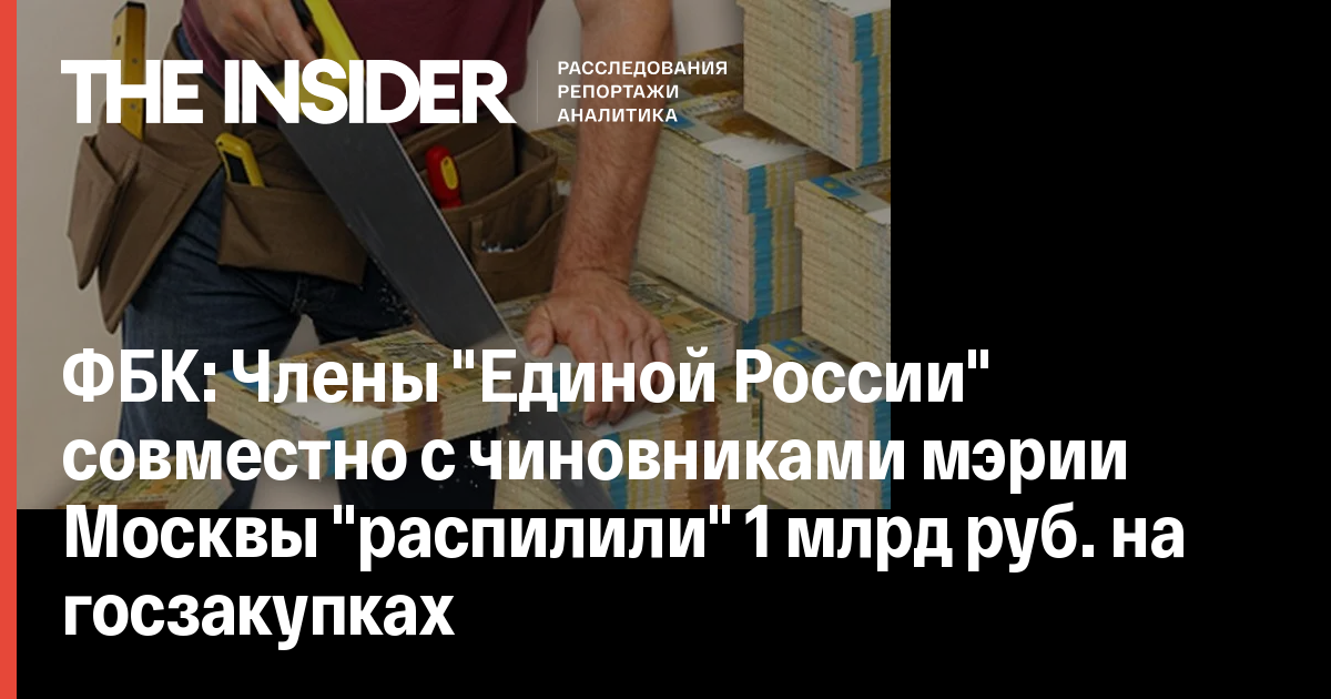ФБК: Члены "Единой России" совместно с чиновниками мэрии Москвы "распилили" 1 млрд руб. на госзакупках