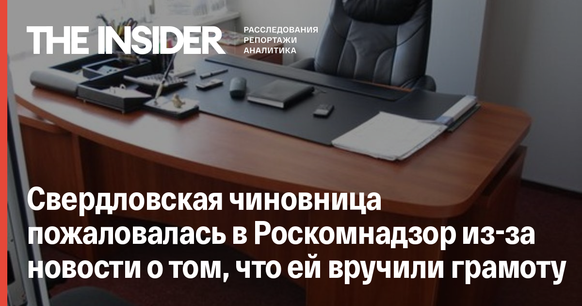 Свердловская чиновница пожаловалась в Роскомнадзор из-за новости о том, что ей вручили грамоту