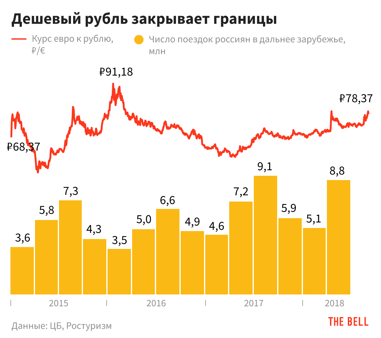 Российский рубль закончил эту неделю ровно в той же точке, с которой ее начинал, 67,3 руб./$ против 67,1 — зато какие страсти были посередине. Не то чтобы мы впервые наблюдали, как ЦБ и Минфин осознанно роняют курс рубля, но в такой нервной обстановке, как сейчас (санкции, кризис в Турции, новые витки торговых войн Трампа) это многих удивило. Впрочем, на самом деле ничего удивительного в такой политике нет. При (пока) рекордно низкой инфляции слабый рубль выгоден почти всем — и в первую очередь бюджету, который получает нефтегазовые доходы в валюте, а тратит их на зарплаты и пенсии, а скоро — и на высокоскоростные железные дороги в Грозный, в рублях. При этом своей главной задачей государство сейчас явно считает накопление резервов перед будущей санкционной войной. В общем, главными пострадавшими от падения рубля станут те 10% россиян, которые регулярно ездят за границу: оставаться дома на время отпуска придется чаще.