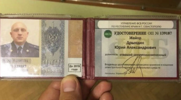 О личности задержанного сообщил севастопольский коллаборационистский сайт "Примечания": это старший оперуполномоченный крымского УФСБ майор Юрий Дрындин. До аннексии Крыма он служил в СБУ, а затем в нарушение присяги перешел в ФСБ.
