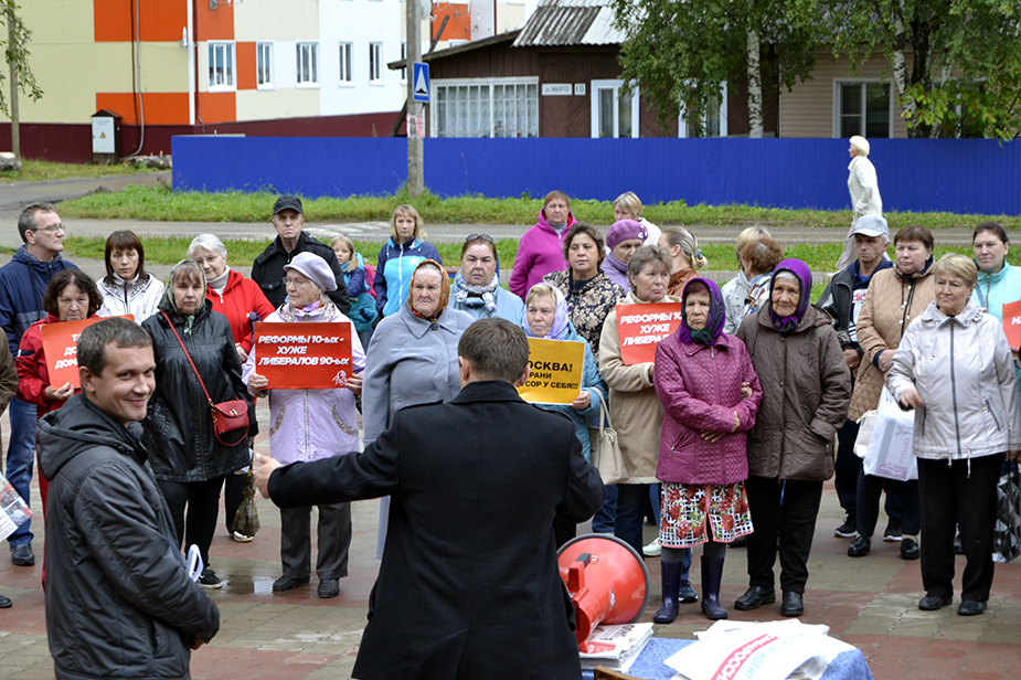 Более 100 человек приняли участие в митинге, который состоялся 24 августа и был организован КПРФ в поселке Жешарт республики Коми (расположен недалеко от границы с Архангельской областью). На нем люди критиковали пенсионную реформу, повышение цен на бензин, рост налогов и строительство мусорного полигона на станции Шиес (находится в нескольких десятках километров от поселка). За происходившим наблюдал корреспондент «7x7».