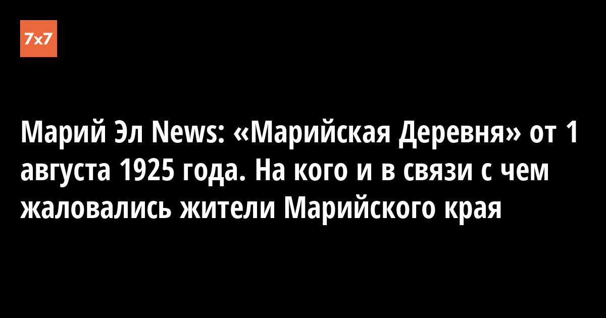 Марий Эл News: «Марийская Деревня» от 1 августа 1925 года. На кого и в связи с чем жаловались жители Марийского края