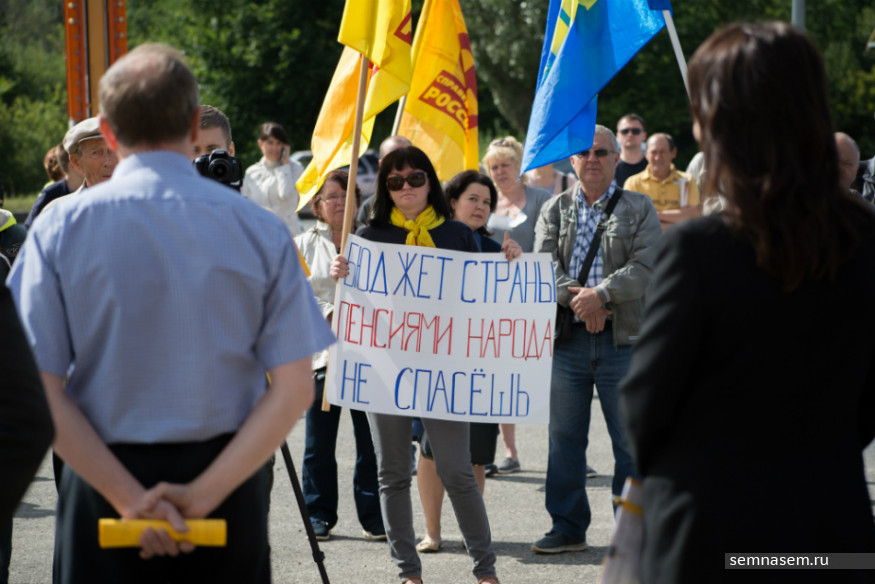 — Нам говорят, что высшим носителем власти в Российской Федерации является многонациональный народ, а 91% этого народа категорически против пенсионной реформы, но его не слушают. Нам говорят, что мы находимся все в одной лодке, и в это тяжелое время не надо проводить действия, чтобы эта лодка не опрокинулась. Давайте спросим президента Путина: «А ты пригласил на разговор за чаем олигархов?» Давайте делиться, раз всем тяжело! Надо спросить у Медведева: «А ты собрал банкиров, которые жируют на наши с вами деньги?»